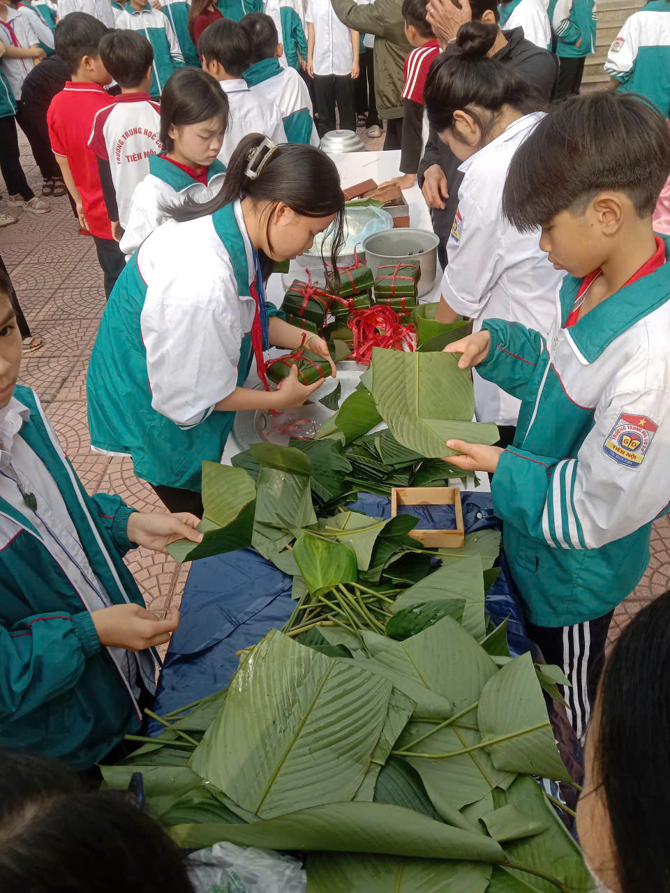 Bánh chưng là loại bánh duy nhất có lịch sử lâu đời trong ẩm thực Việt Nam và còn được sử sách nhắc lại, bánh chưng có vị trí đặc biệt trong tâm thức của mỗi người Việt. Truyền thuyết “Bánh chưng – bánh giầy” là lời giải thích về ý nghĩa nguồn cội và tầm quan trọng của cây lúa. Các em học sinh tại mái trường THCS B phường Tiên Sơn không chỉ được học các tác phẩm văn học như vậy trên lớp mà còn đang được thực hành ngay tại trường để thấy được những nét đẹp truyền thống của dân tộc.