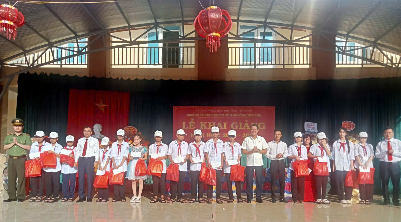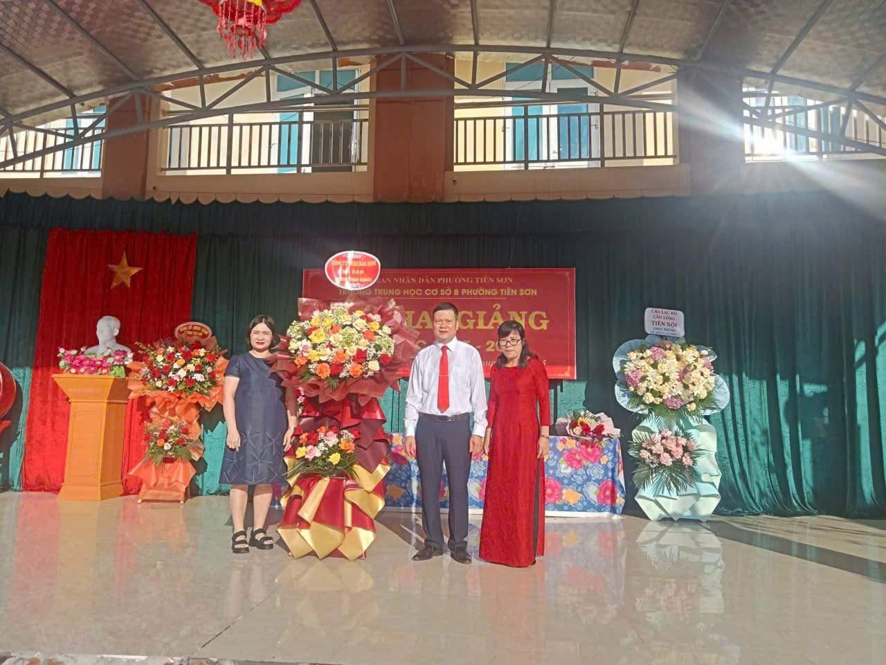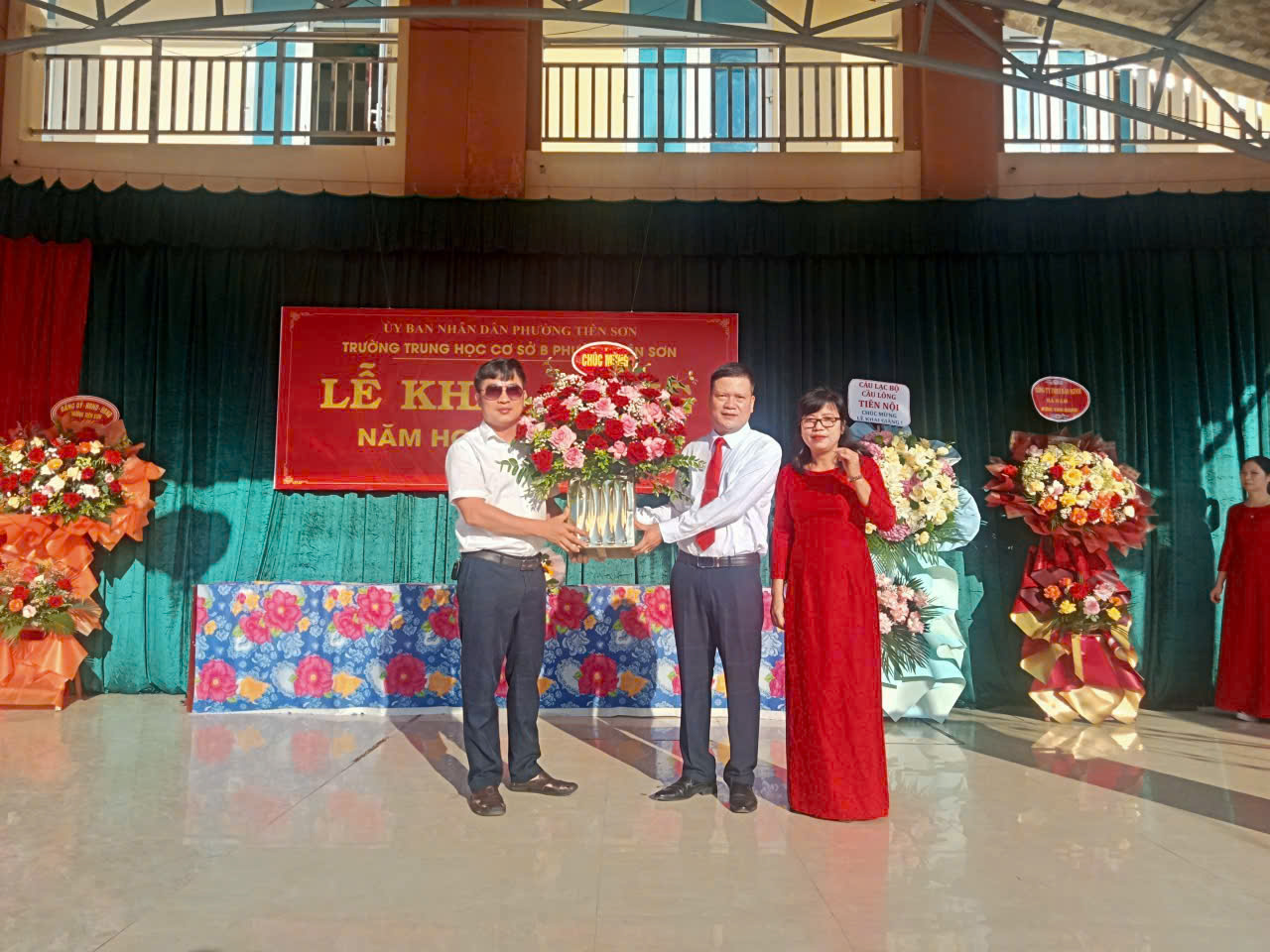 Trong nhiều năm qua, thầy và trò trường THCS B phường Tiên Sơn đã nhận được sự quan tâm của các cấp lãnh đạo, chính quyền địa phương. Đó là động lực giúp cho phong trào của nhà trường ngày càng phát triển về bề rộng cũng như chiều sâu. Trong buổi khai giảng long trọng này, Đảng ủy – UBND B phường Tiên Sơn đã gửi lẵng hoa tươi thắm về để động viên và chúc mừng nhà trường.