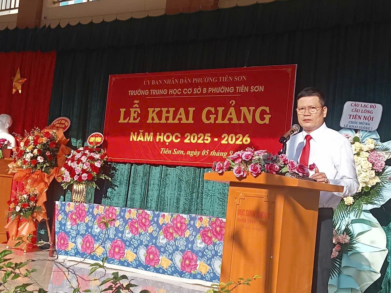Hoà chung trong không khí tưng bừng phấn khởi của đất nước với những giây phút hào hùng của mùa thu lịch sử kỉ niệm trọng thể những ngày lễ lớn: Kỉ niệm 80 năm cách mạng tháng Tám thành công và Quốc khánh 2-9. Hoà chung không khí tưng bừng của ngày hội toàn dân đưa trẻ tới trường hàng triệu Giáo viên, Học sinh, Sinh viên trên cả nước lại cùng nhau bước vào cuộc hành trình khám phá tri thức mới. Thực hiện sự chỉ đạo của Sở GDĐT Ninh Bình, UBND phường Tiên Sơn, ngày 05/9/2025 trường THCS B phường Tiên Sơn long trọng tổ chức Lễ khai giảng năm học mới 2024– 2025.